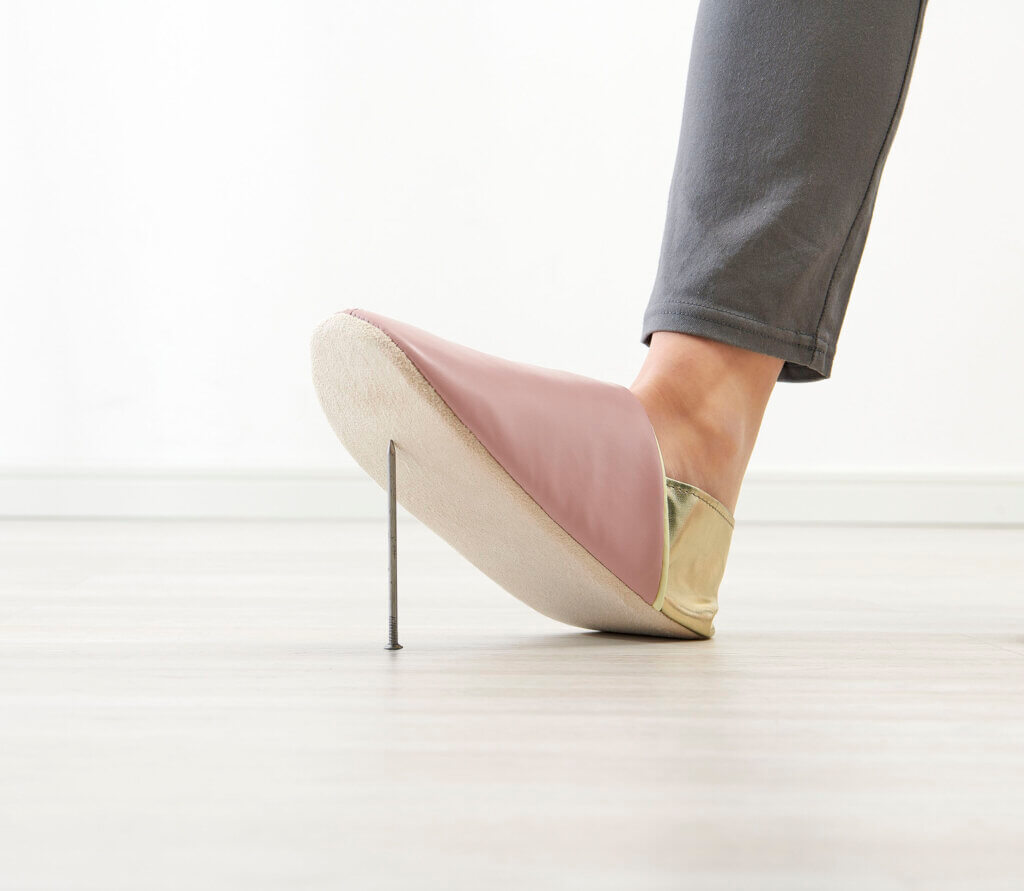 いざという時!ガラス片や釘から足を守る防災スリッパ