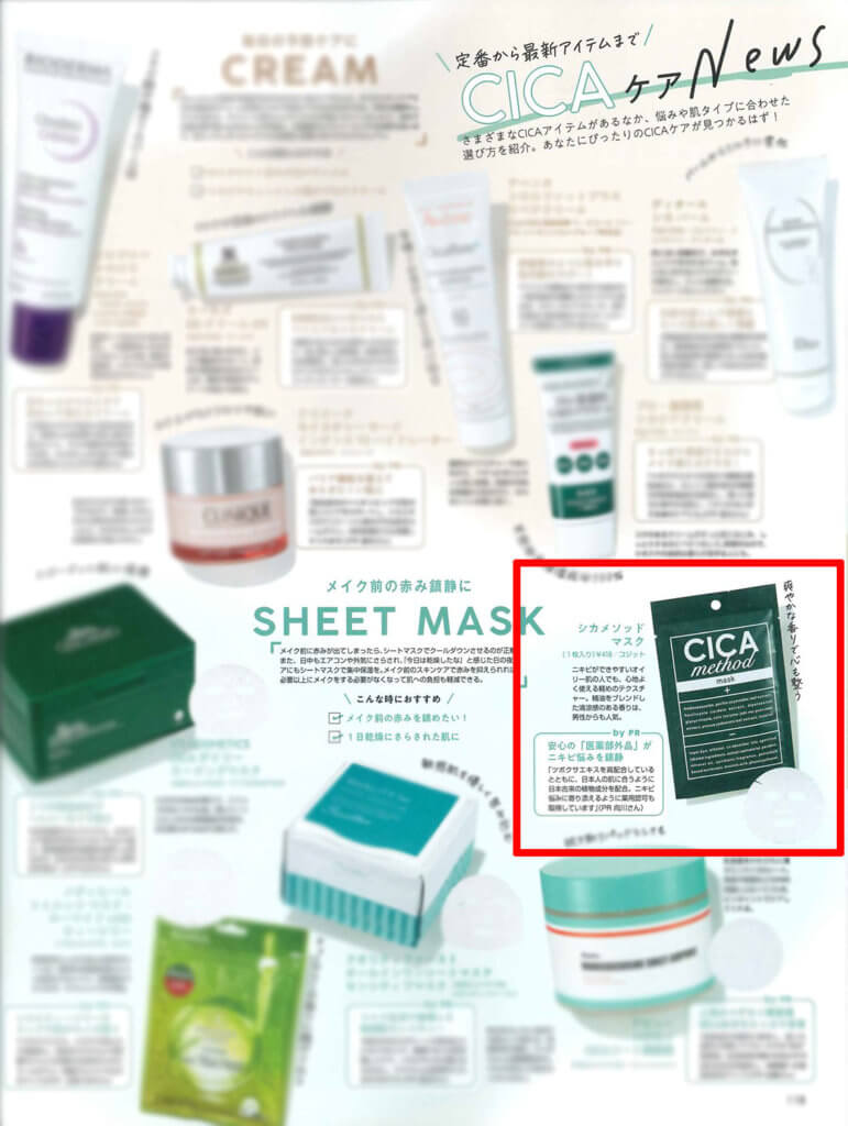 「non-no 3月号」で「CICA method MASK」が紹介されました 2022.02.01 / MEDIA 「non-no 3月号」 「定番から最新アイテムまで CICAケアNews」のページで 「CICA method MASK」が紹介されました。 NEWS LIST PREV NEXT